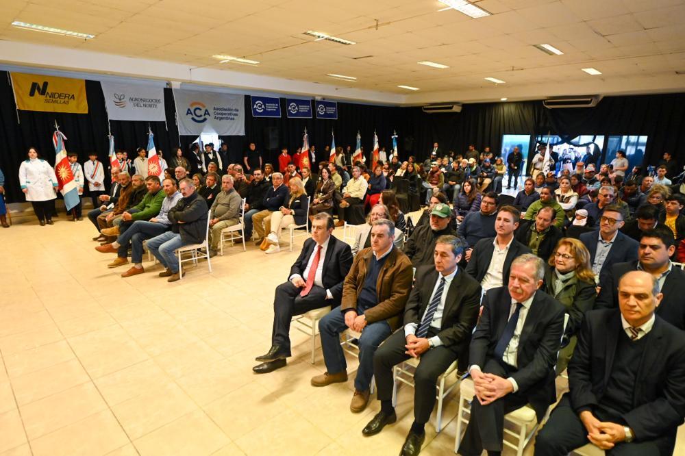 Estuvo acompañado por el vicegobernador Carlos Silva Neder; el jefe de Gabinete, Elías Suárez; el ministro de Producción, Miguel Mandrille y el ministro de Gobierno, Marcelo Barbur; quienes fueron recibidos por el intendente Diego Ponti y el presidente de la Sociedad Rural del Noreste, José Manubens, además de representantes de agrupaciones rurales, educativas y sociales, entre otras.