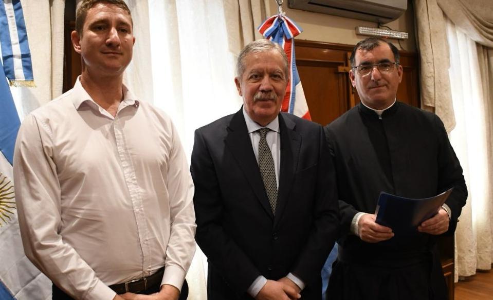 La firma se llevó a cabo en Casa de Gobierno, donde estuvieron también el intendente de Quimilí, Diego Ponti, y el superior de los padres escolapios de Quimilí, Juan Petkus.