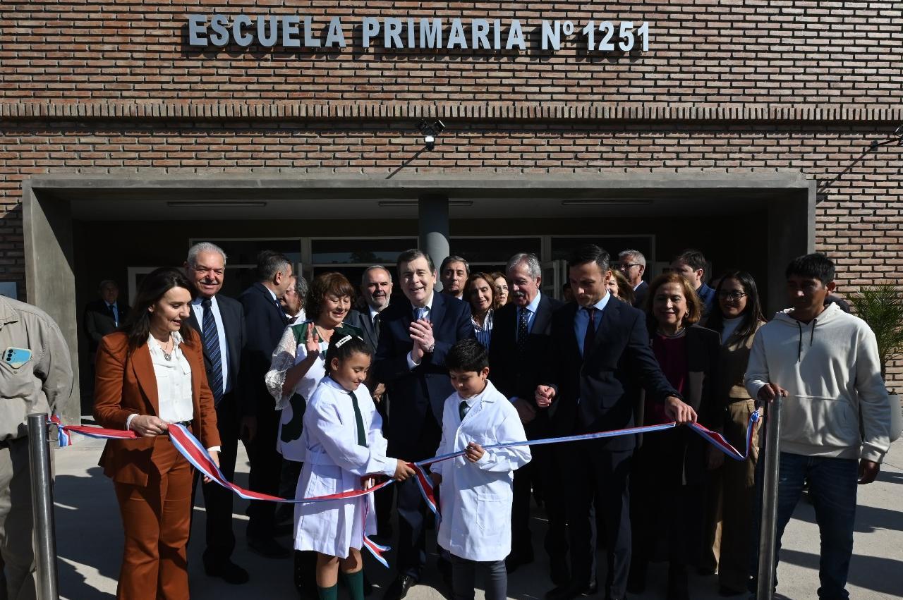 Posteriormente, se sumaron a la comitiva los ministros de Obras Públicas, Aldo Hid, y de Educación, Mariela Nassif. También la presidente del Consejo General de Educación, María Elena Herrera, y el secretario de Obras Públicas, Jorge Zuaín, para dejar inaugurado el edificio de la Escuela N° 1251, donde 94 alumnos recibirán una educación de calidad, con las mismas herramientas que los niños de toda la provincia. El edificio cuenta con aulas completamente equipadas, laboratorio, patio, biblioteca y una sala de informática.