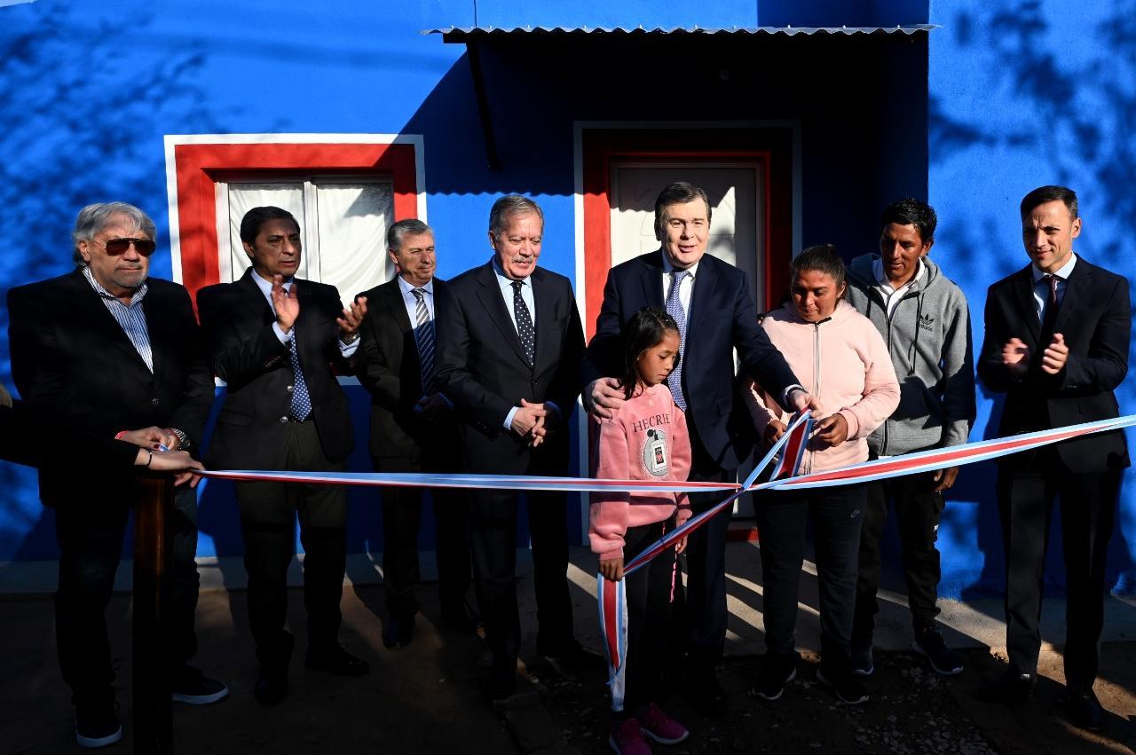 Luego de haber sido recibido por el intendente Víctor Araujo, el mandatario junto con el vicegobernador Carlos Silva Neder; el jefe de Gabinete, Elías Suárez, y el subsecretario de Promoción Humana del Ministerio de Desarrollo Social, Ernesto Fernández, se dirigieron a la casa del vecino Marcelo Concha, donde se hizo la entrega simbólica a todas las familias beneficiadas por el programa de Viviendas Sociales que, en este caso fueron ejecutadas con la colaboración de la Municipalidad de Fernández y las cooperativas de Trabajo La Banda Construye; Trabajo San Andrés y La Ecológica.