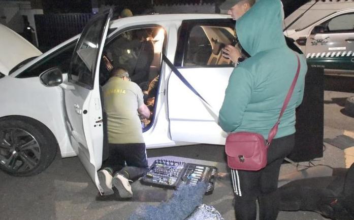 El procedimiento comenzó cuando los efectivos, con el apoyo del can detector "Dana", notaron una fuerte reacción del animal al olfatear el piso de la cabina del rodado. Ante la sospecha, el vehículo fue examinado con un escáner, cuyo operador advirtió la presencia de figuras compatibles con paquetes rectangulares, lo que reforzó las sospechas de ocultamiento de estupefacientes.