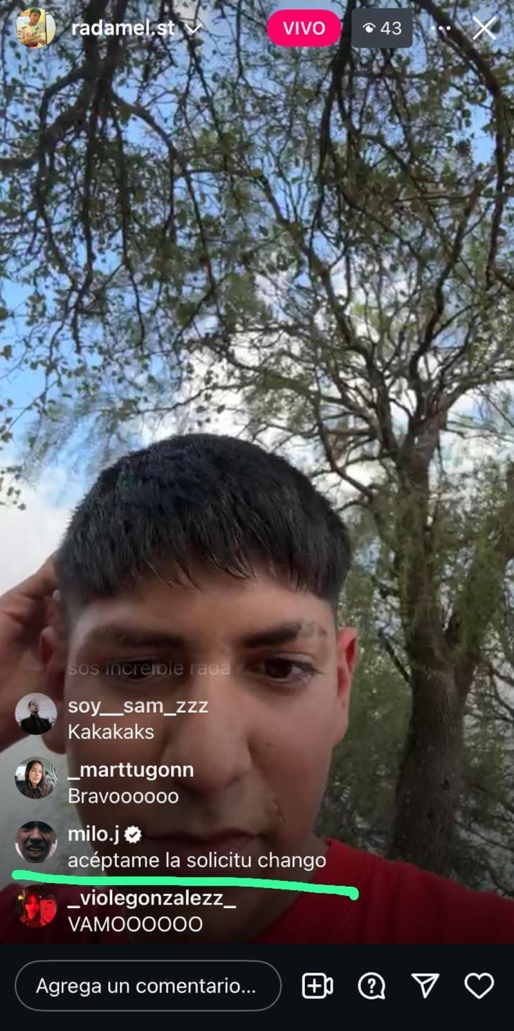 Antes de aparecer en el vivo de Radamel, desde su cuenta de Instagram, Milo había hecho algunos comentarios como "Radamel canta Radamel", en referencia a la canción que estrenará el 25 de septiembre cuando salga a la luz el disco "La vida era más corta". También le escribió pidiéndole que le acepte su solicitud.