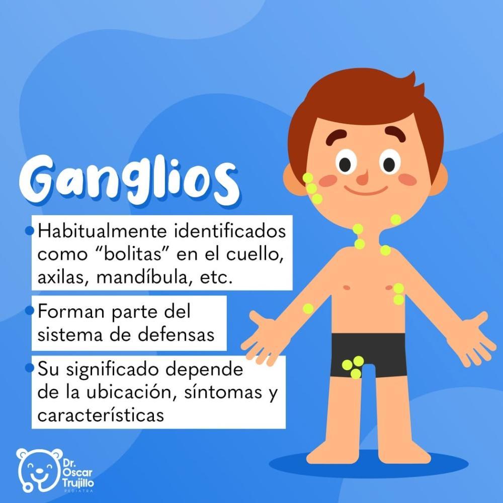 Los ganglios están distribuidos estratégicamente por todo el cuerpo, llámese ingle, mediastino, axilas, cuello, y los mismos son parte del sistema de defensa del cuerpo.