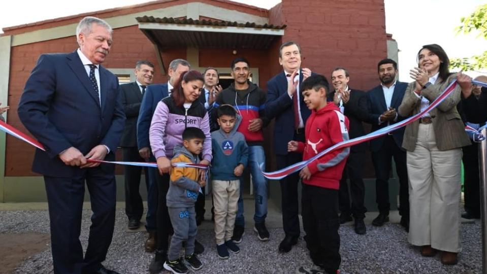 El recorrido inaugural comenzó por el domicilio de Gissela Comán, donde se realizó el corte de cintas y la entrega simbólica de llaves a las 12 familias beneficiadas por el programa ejecutado a través del Ministerio de Desarrollo Social, y que en este caso contó con la colaboración de la Municipalidad de Campo Gallo.