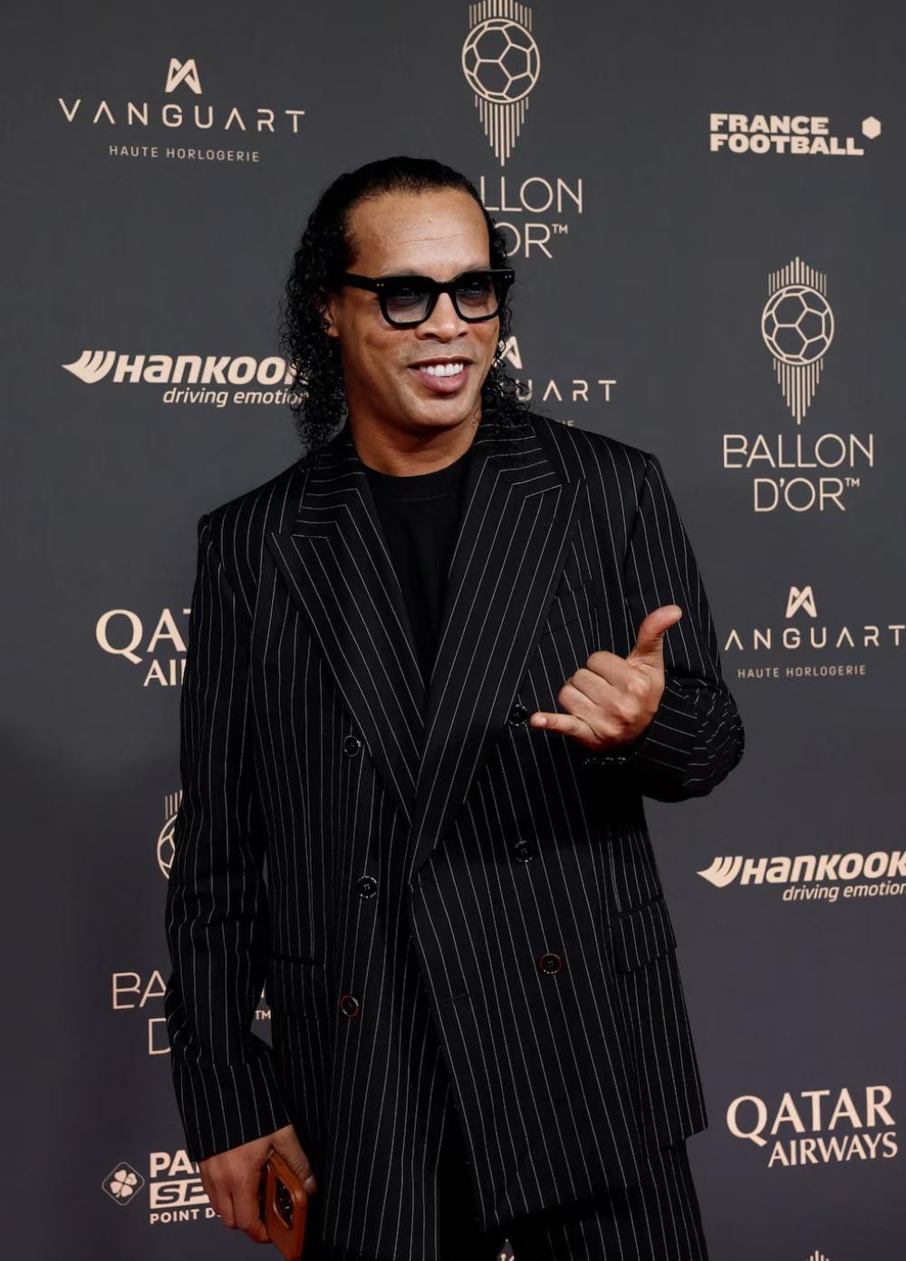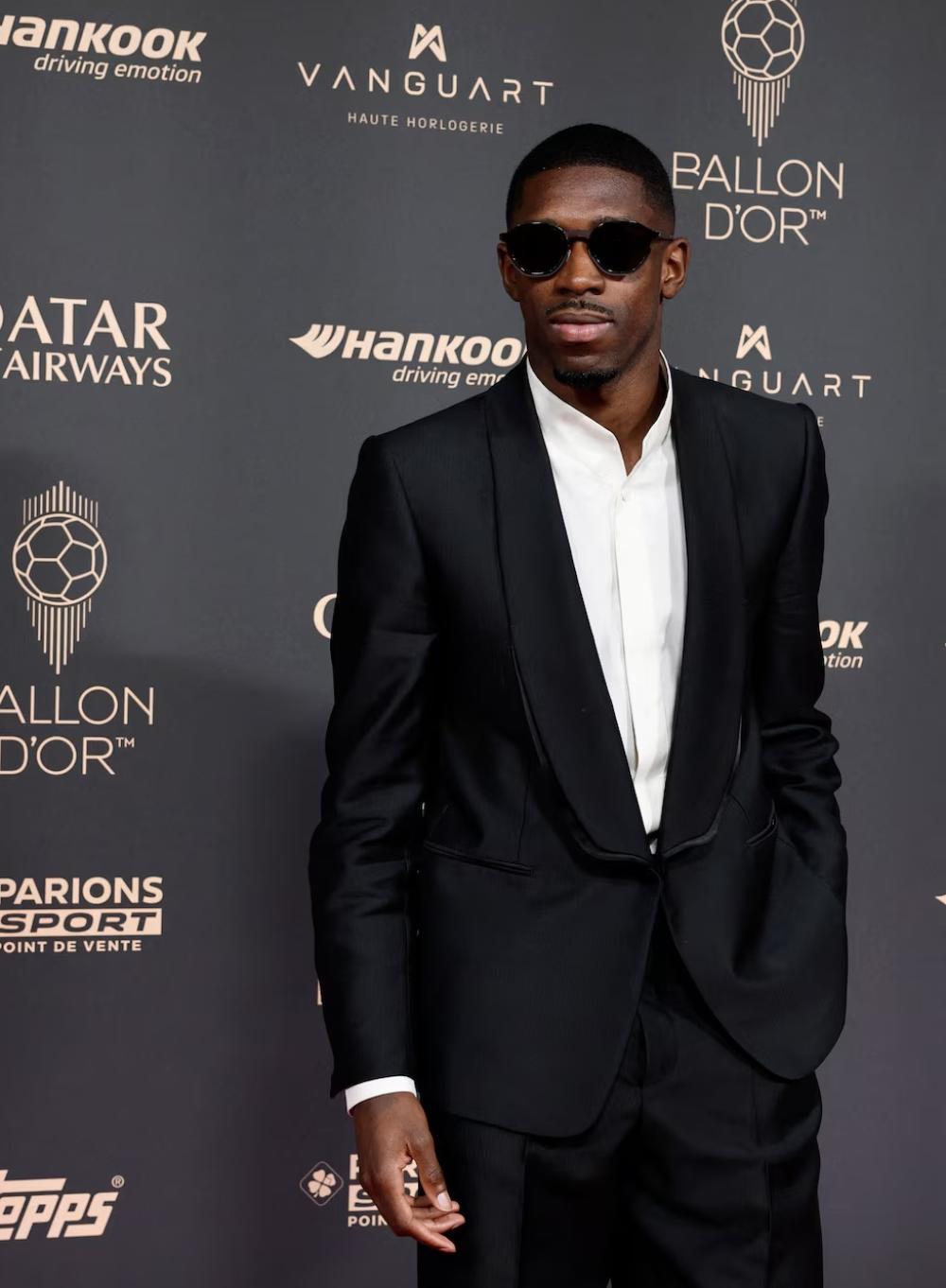 El flamante ganador del Balón de Oro apareció con un traje negro satinado y camisa blanca de cuello mao, sin corbata. El detalle más llamativo: sus anteojos de sol de estilo retro.