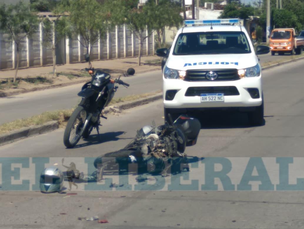 Un brutal accidente sorprendió a los vecinos del barrio Mariano Moreno, de la ciudad capital, durante la mañana de este martes. Un motociclista debió ser derivado al Hospital Regional, con heridas de diversa consideración.