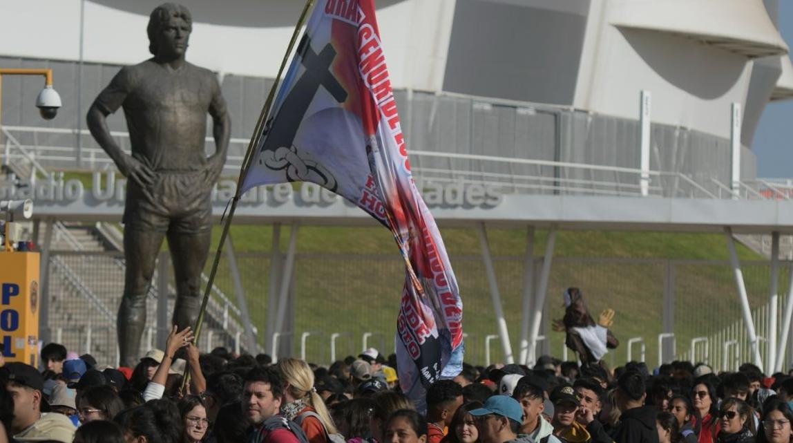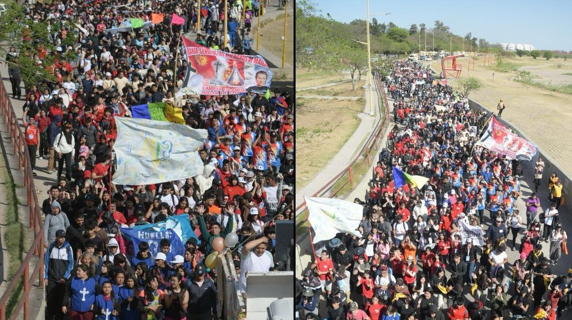 La marcha comenzó en el monumento a Diego Maradona, ubicado en el Estadio Único, y avanza entre cánticos, reflexiones y momentos de oración hacia el Campus de la UCSE, donde se prevé que concluya cerca del mediodía con actividades recreativas y celebraciones comunitarias.