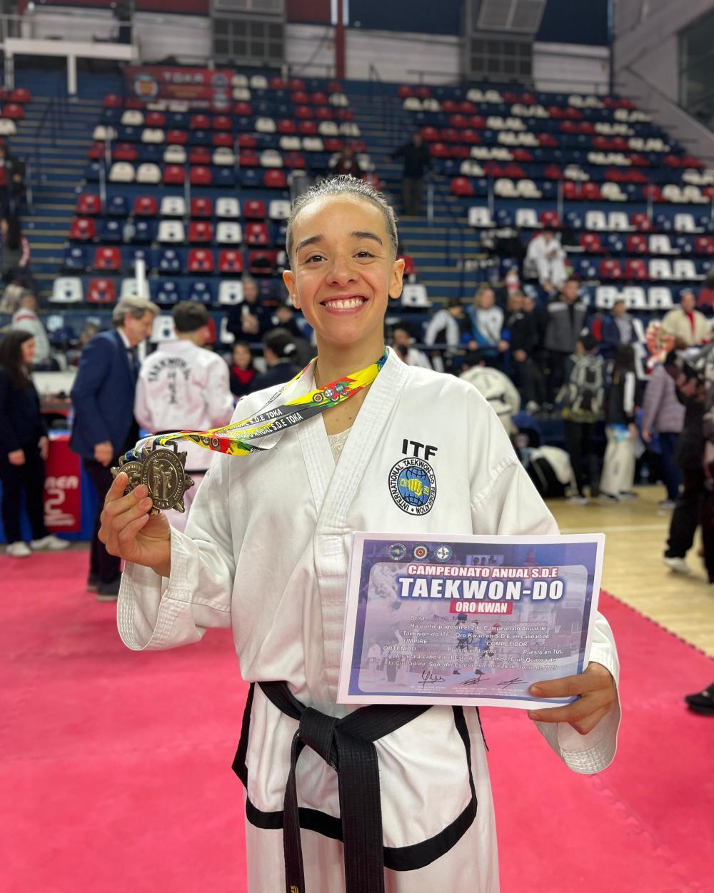 Este 2025 llega a Italia con un presente brillante: "Este año participé en todas las competencias saliendo en primer puesto tanto en tul como en combate. El torneo internacional de mayo en Tucumán fue muy importante porque gané en todas las modalidades, tanto individual como en equipo", contó la joven.