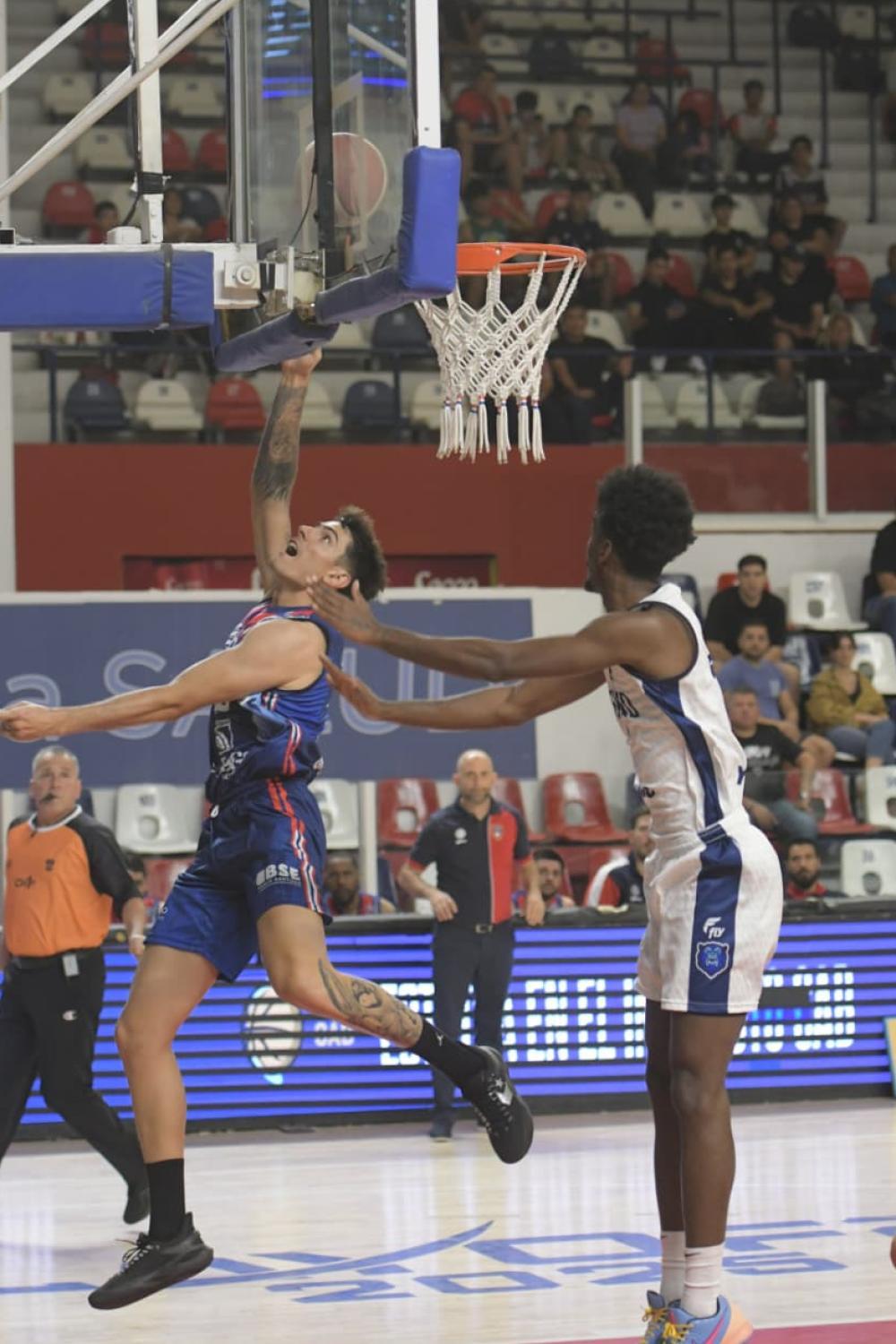 El partido arrancó parejo, pero Nicolás Romano impuso su físico en la pintura y las bombas de Sebastián Orresta y Brandon Robinson le permitieron establecer una brecha de 10 puntos (17 a 7) para obligar al rival a pedir un tiempo muerto. Con la banca sobre el parqué, la "Fusión" acentuó su supremacía en las diferentes facetas del juego, estiró la ventaja y ganó el parcial 32 a 17 con momentos de buen básquet.