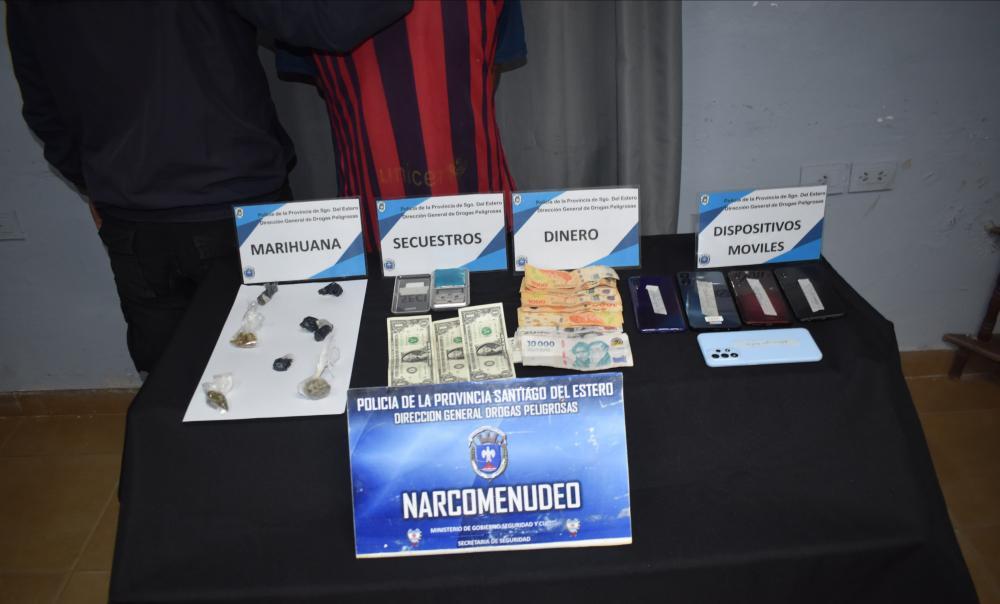 Durante el procedimiento, autorizado por el Juez de Control y Garantías del Departamento Río Hondo, se logró el secuestro de siete envoltorios de marihuana, 212 semillas de cannabis, una balanza digital de precisión, cinco teléfonos celulares, dinero en efectivo por la suma de $42.200 y tres dólares estadounidenses. Asimismo, se concretó la detención de un hombre de 33 años, acusado de dedicarse al fraccionamiento y venta directa de estupefacientes.