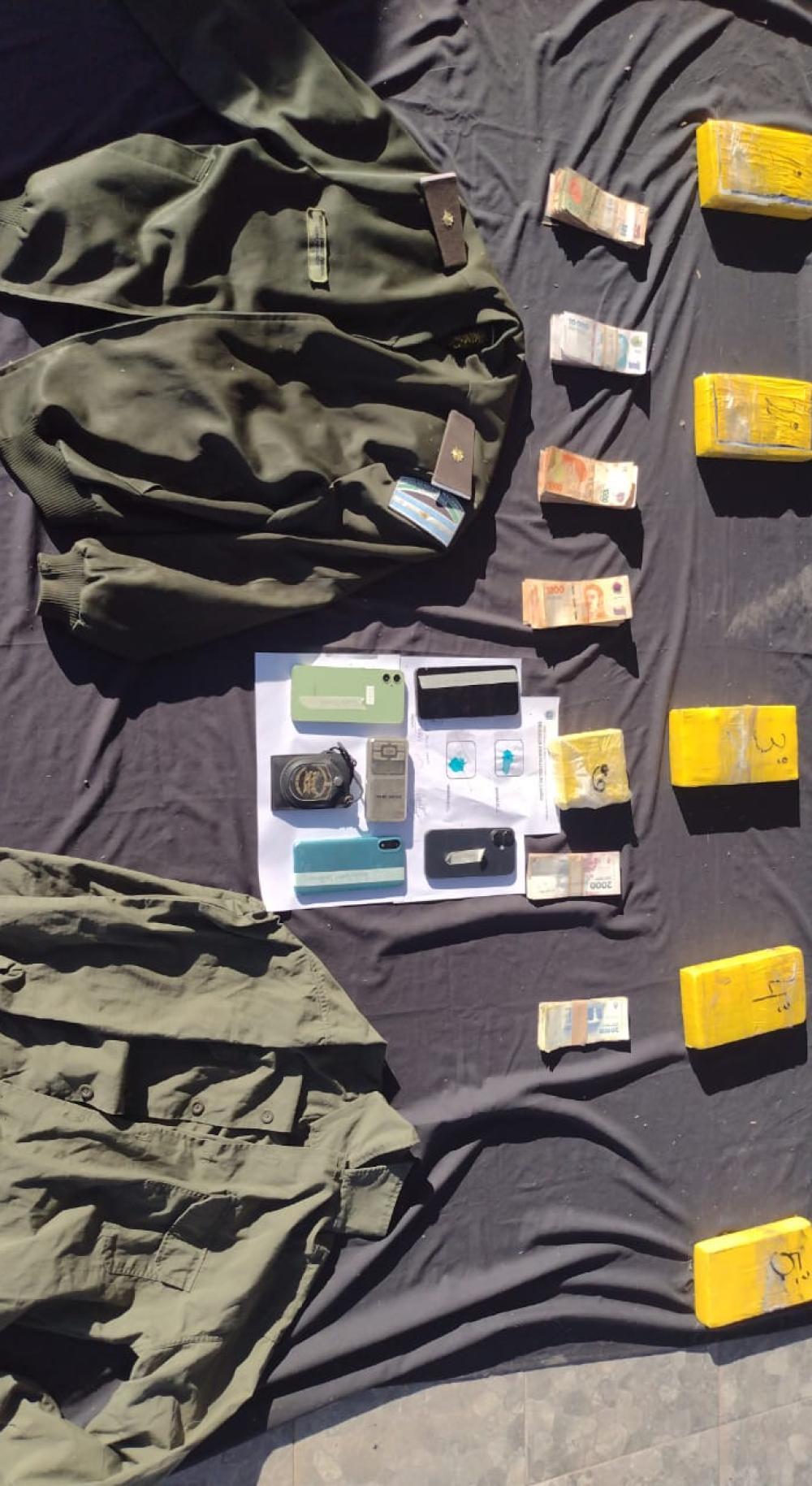 Los uniformados secuestraron una camioneta Toyota Hilux (dominio AH459XT, sin colocar), cuatro teléfonos celulares de alta gama, $831.400 en efectivo, $2.000 guaraníes, además de una campera, camisa y credencial de GNA pertenecientes al comandante detenido.