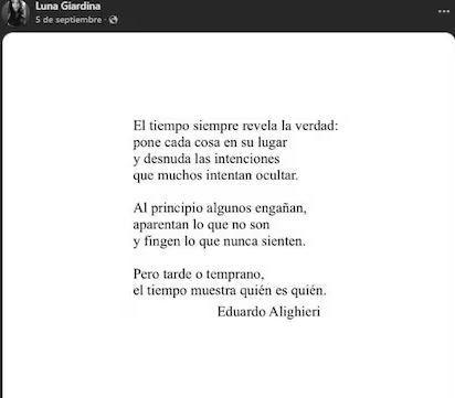 El viernes, horas antes de ser asesinada, Giardina costurera y estudiante universitaria de agronomía había celebrado una buena calificación en un examen: "Vamos bien. Qué lindo es llorar de felicidad. Lo que es para uno, siempre termina llegando. Gracias a Dios", escribió.