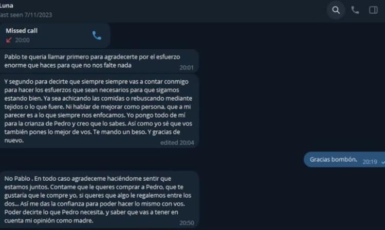 En esos textos, el hijo de ambos era presentado como víctima de "abuso institucional", mientras que Laurta era retratado como un padre desesperado por "un sistema que lo dejó sin opciones". Incluso, el contenido incluía acusaciones infundadas sobre la infancia de Giardina, donde se la señalaba falsamente como víctima de explotación sexual por parte de su madre, vinculando esa historia inventada con sus supuestas conductas hacia Laurta.