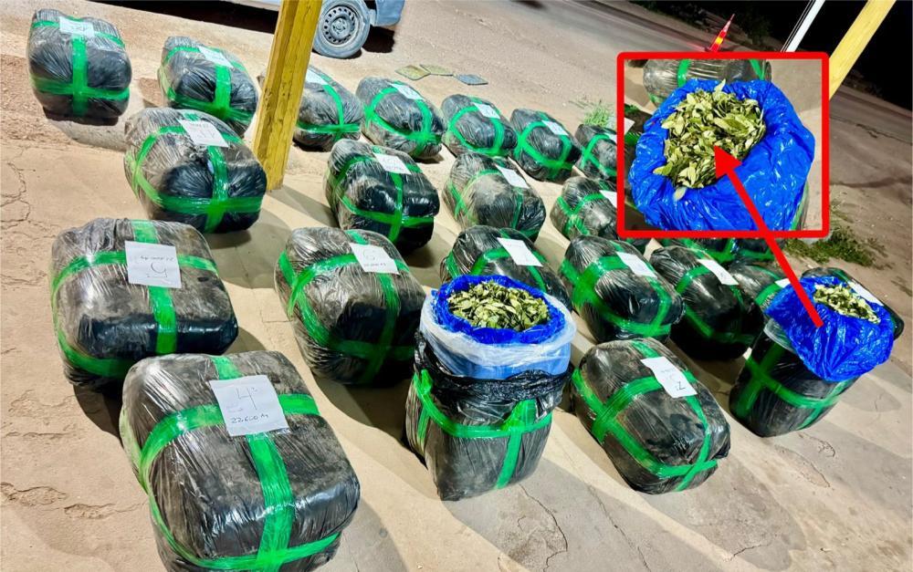 Como resultado del procedimiento, se hallaron en el interior de la Renault Kangoo 24 bultos que contenían hojas de coca, con un peso total de 538 kilogramos, además de un pequeño envoltorio con 0,6 gramos de marihuana. Todo el material fue secuestrado.