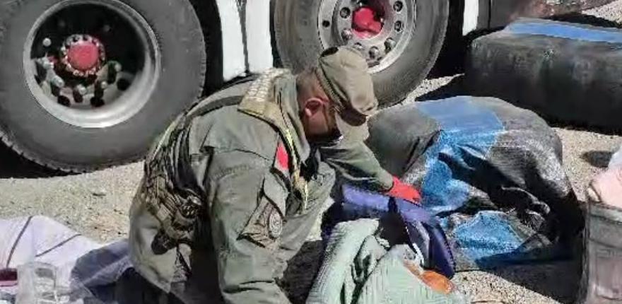 Al continuar con el registro de la bodega del rodado, que llevaba trabajadores "golondrinas", los gendarmes hallaron bultos de grandes dimensiones hechos con colchas y frazadas.