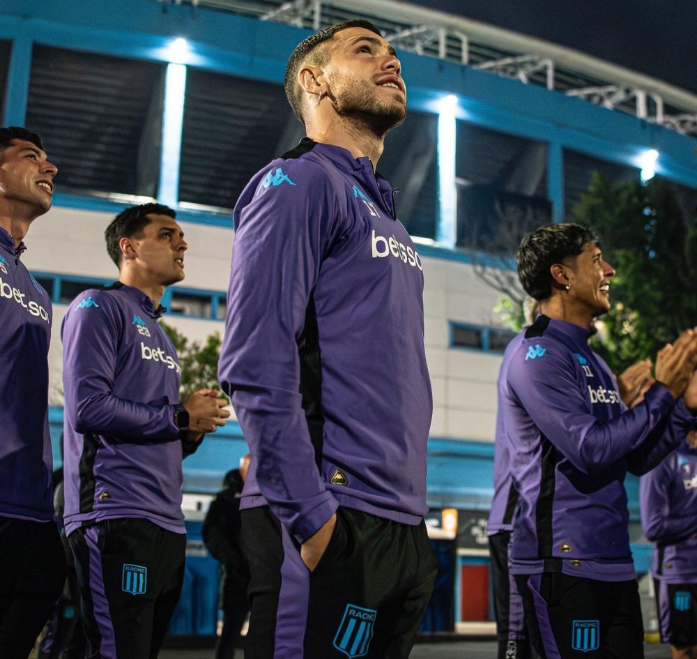 En la cancha de Racing vamos a ganar y la vuelta vamos a dar", cantaban los simpatizantes, muchos de ellos agolpados y hasta colgados de las alambradas, al plantel completo de jugadores que, con ropa de entrenamiento, observaba con fascinación las bengalas y el entusiasmo de su afición. Junto a ellos también estaba el histórico ex arquero "Nacho" González, integrante del cuerpo técnico, y por supuesto el DT Gustavo Costas (factótum de la convocatoria) y su hijo Gustavito.