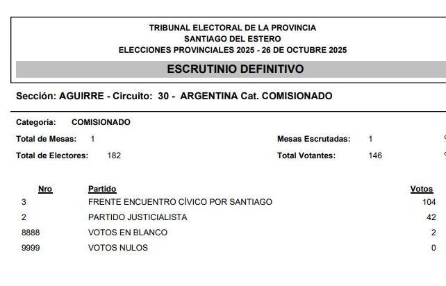 Finalizó el escrutinio definitivo de las elecciones de comisionados en el interior de Santiago del Estero Finalizó el escrutinio definitivo de las elecciones de comisionados en el interior de Santiago del Estero