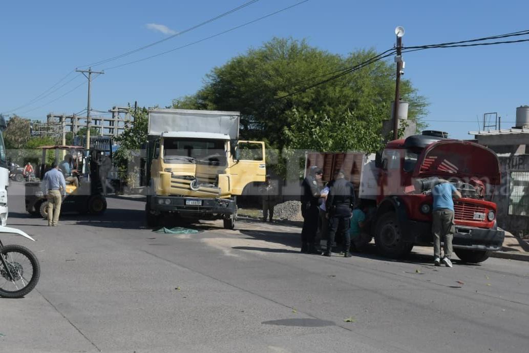 Según las primeras informaciones, un camión que estaba descargando arena sobre la vía pública fue embestido desde atrás por otro vehículo de gran porte utilizado para el reparto de bebidas.