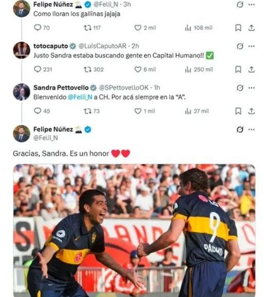 Todo comenzó con una publicación de Felipe Núñez, integrante del equipo económico presidencial, quien celebró la victoria "xeneize" con una frase provocadora: "Cómo lloran las gallinas jajaja", escribió al finalizar el encuentro correspondiente a la 15ª fecha del Torneo Clausura 2025.