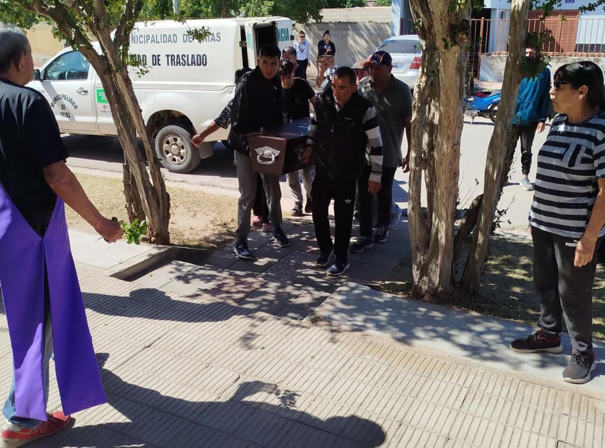 El cortejo se detuvo en la capilla Virgen del Valle, ubicada a la vuelta de la casa donde se produjo el valatorio, y desde allí partió hasta el cementerio San Agustín.
