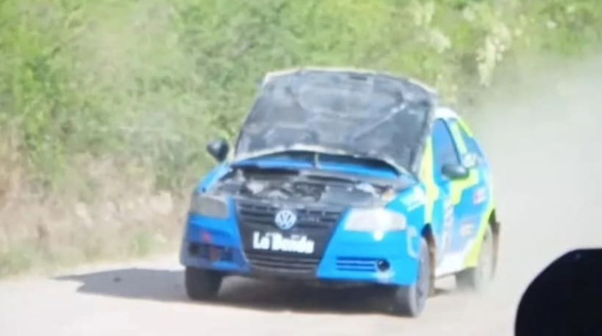 Un video del público se filmó el sábado cuando la dupla bandeña pasó como exhalación por los caminos con el capot totalmente levantado contra el parabrisas sin salirse un milímetro del trazado.