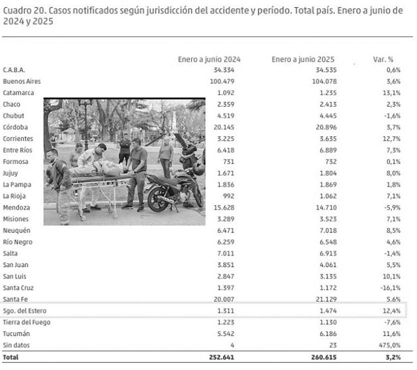 No solo creció la cantidad de accidentes este año, sino también la severidad de los mismos. En este primer semestre, hubo 163 casos más notificados que en el mismo lapso de 2024. Pero la situación es tal que por ejemplo, un caso notificado de un accidente "in itinere" puede además derivar en que esa persona deba necesitar unos días de baja y con secuelas incapacitantes.