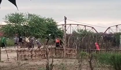 Ante los ataques, la policía realizó disparos con balas de goma para dispersar a los sujetos que los agredían con hondas y piedras, y poder continuar con el procedimiento. En medio del enfrentamiento se produjeron momentos de extrema tensión y daños en la zona.