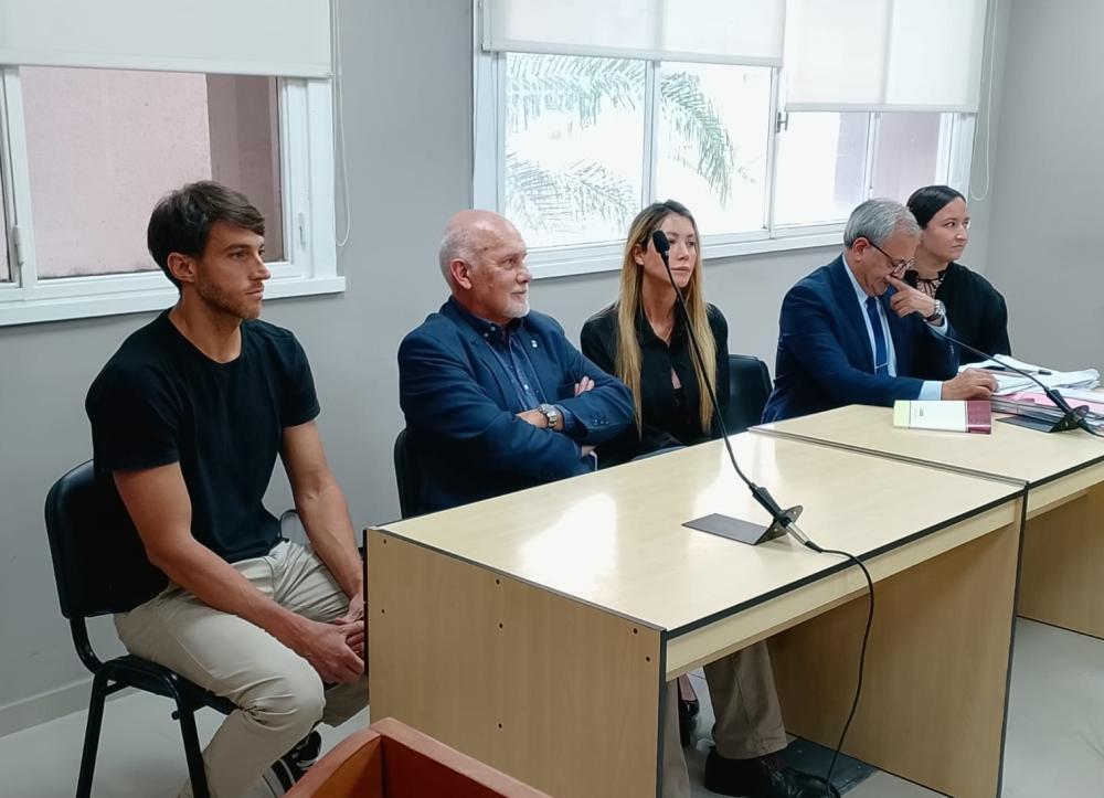 La funcionaria endilga al ex novio de la víctima, Joaquín Cesca, una presunta "instigación al suicidio". Lo representan, Guillermo Ruiz Alvelda y Sofía Oberlander.