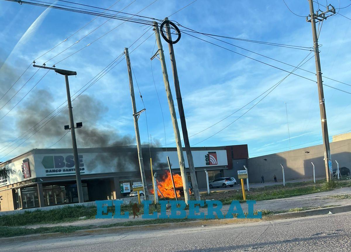 En horas de la tarde de este martes, efectivos policiales fueron alertados sobre un auto envuelto en llamas en el Parque Industrial, por lo que rápidamente solicitaron colaboración a personal de Bomberos Voluntarios de La Banda.