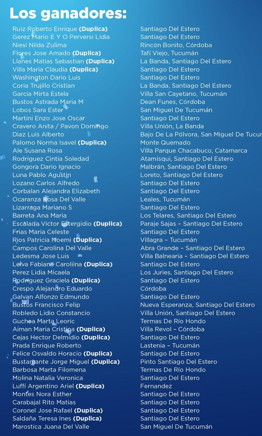 Estos son los 50 ganadores de $100 mil del Banco Santiago del Estero Estos son los 50 ganadores de $100 mil del Banco Santiago del Estero
