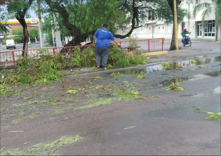 Desde Protección Civil y otras áreas municipales y Bomberos Voluntarios seguirán trabajando en diferentes sectores de la ciudad, especialmente en las tareas de despejar calles con árboles y postes caídos y gran cantidad de cables cortados.
