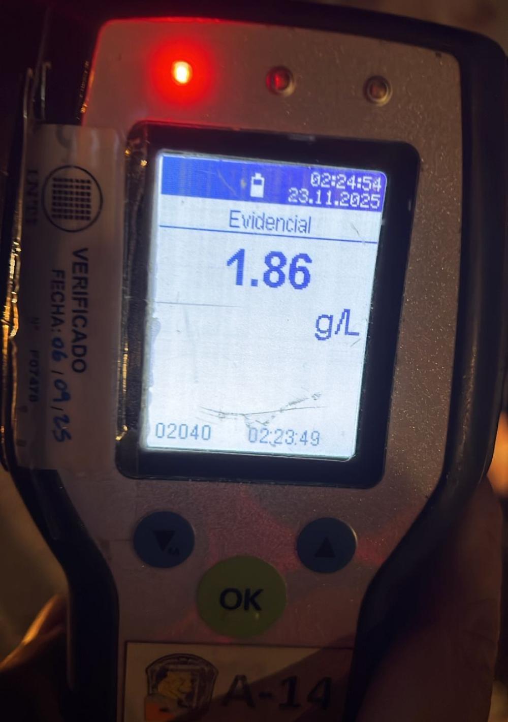 Al realizarse el correspondiente test de alcoholemia, se conoció que el hombre conducía con 1,86 g/l de alcohol en sangre, y pese a que tenía algunas heridas producto del siniestro, se negó a ser trasladado hacia el centro de salud.