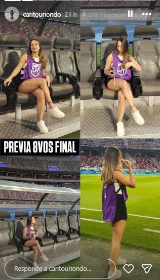 La víctima sería la periodista Carolina Uriondo, quien se encontraba realizando la cobertura del partido cuando, según denunció a través de sus redes sociales, fue agredida por un individuo mientras cumplía con su labor.