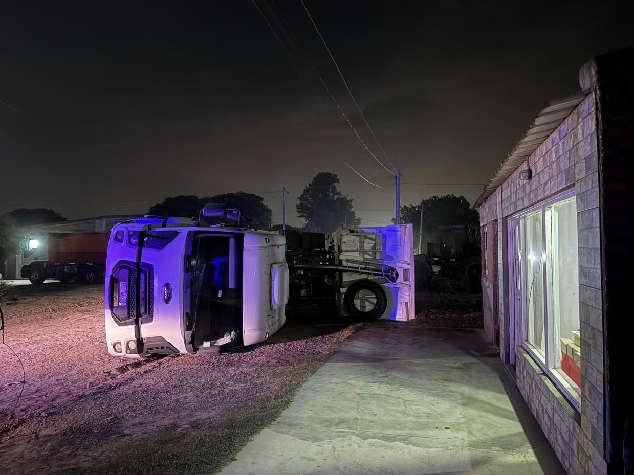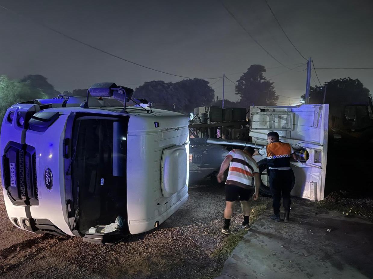 El hecho ocurrió alrededor de las 20:20, cuando personal policial acudió al lugar tras un aviso recibido desde la sala de monitoreo. Al arribar, los efectivos constataron que un camión Ford Scania de color blanco, había volcado su carga y el rodado como consecuencia de una mala maniobra.