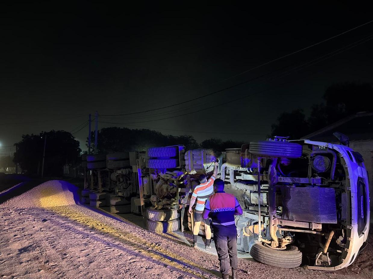 Un camión cargado con ripio volcó este jueves por la noche en el barrio Luján, generando preocupación entre los vecinos, aunque afortunadamente no se registraron personas lesionadas.