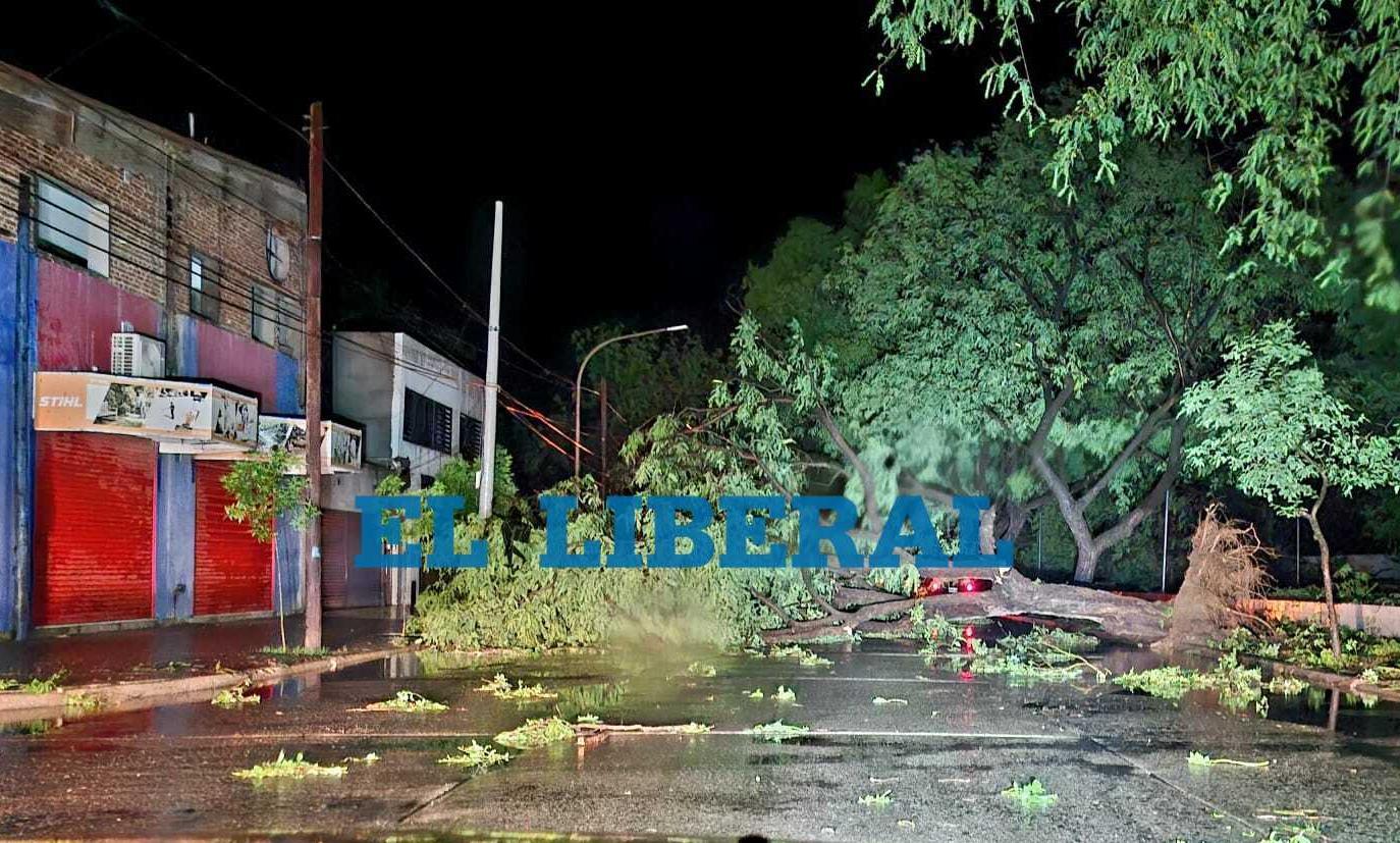 Minutos después, la tormenta desató una fuerte caída de granizo con piedras del tamaño de una bolilla que golpearon techos, vehículos y veredas. El temporal también provocó voladuras de techos de chapa en viviendas, además de caídas de árboles y postes, lo que derivó en cortes de luz en amplios sectores de la ciudad.