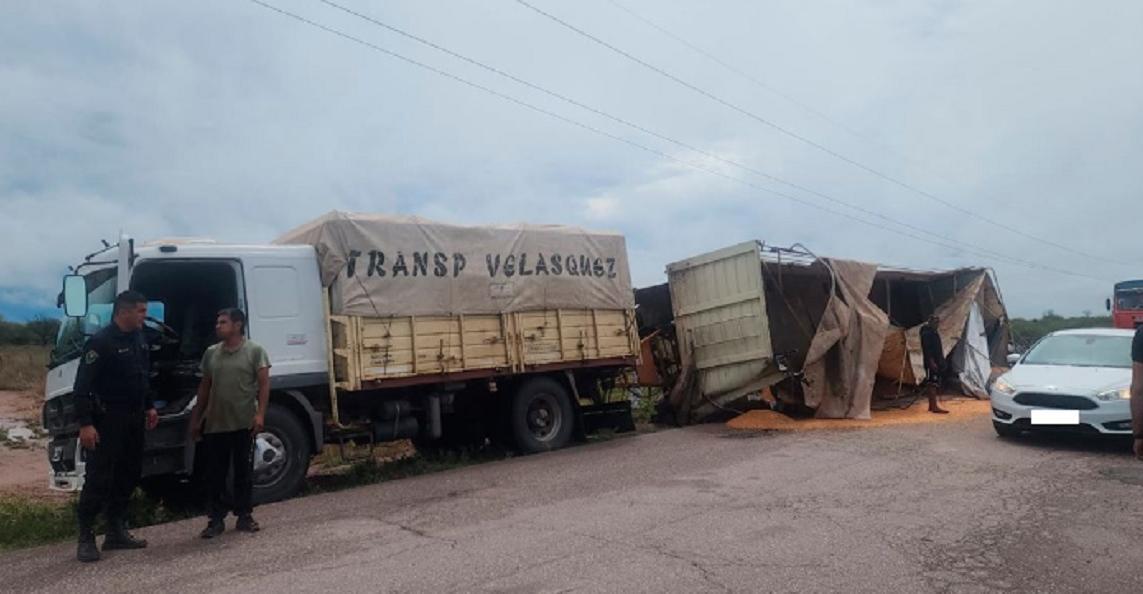 Según informaron fuentes policiales, el conductor un hombre de 34 años, oriundo de Jujuy perdió el control del acoplado luego de que una de las ruedas "mordiera" la banquina. Esto desestabilizó el vehículo y derivó en el vuelco, dispersando una cantidad considerable de maíz.