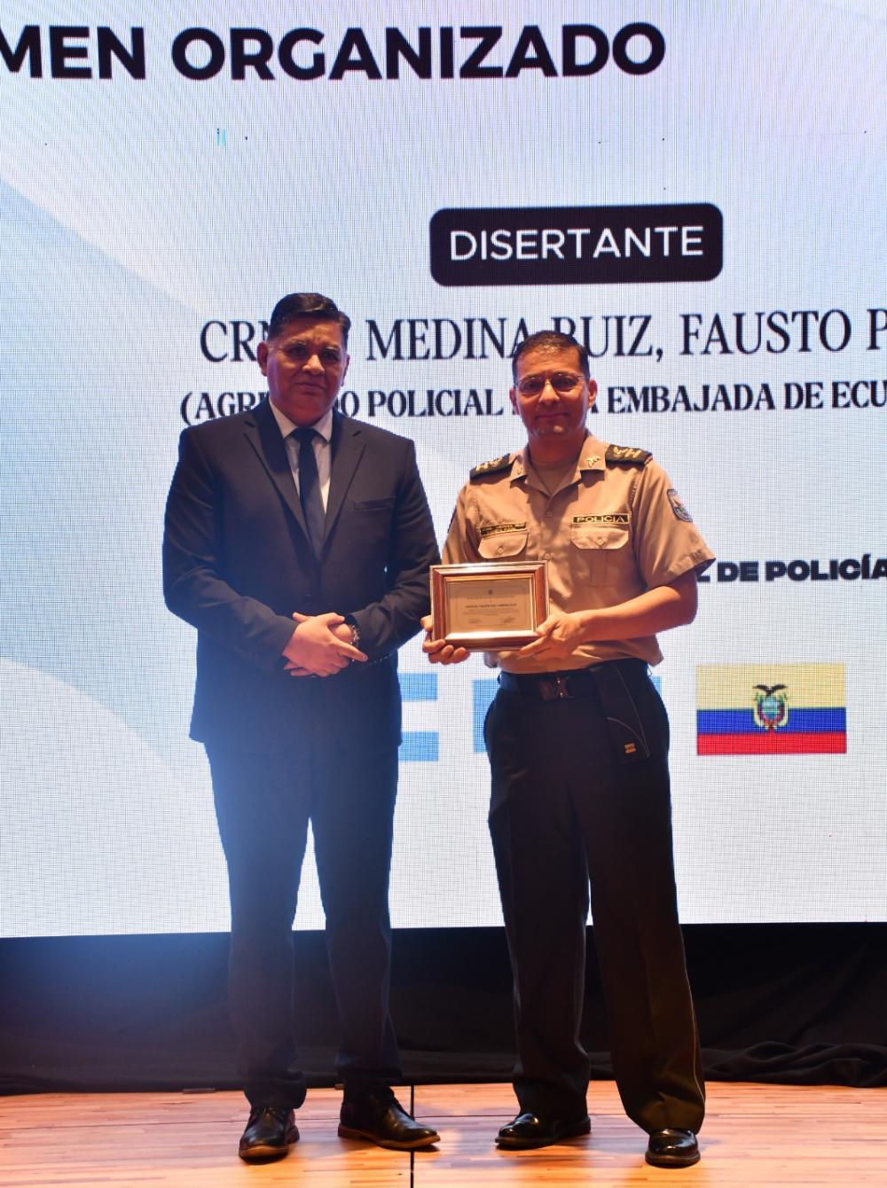 Durante su exposición, titulada "Fenómeno del Crimen Organizado en Ecuador", el Coronel Medina Ruiz analizó la estructura y evolución de organizaciones criminales transnacionales, rutas del narcotráfico, modalidades de lavado de activos y modos de operación de bandas delictivas. Además, presentó estrategias aplicadas en su país basadas en inteligencia criminal, coordinación interinstitucional, cooperación internacional y prevención social, destacando la importancia del fortalecimiento institucional para anticiparse a amenazas complejas.