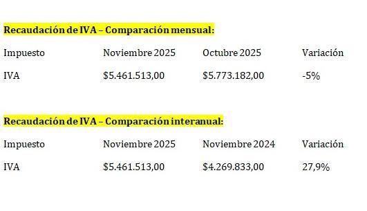 El IVA, uno de los pilares de la recaudación nacional, mostró en noviembre de 2025 una caída del 5% respecto de octubre, en términos nominales. La baja está directamente vinculada al retroceso del consumo en todo el país.