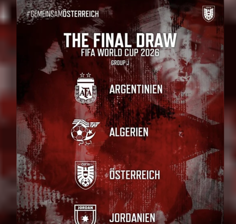En el medio de la euforia por la revelación de los grupos de la fase inicial de la Copa del Mundo 2026, Asociación Austríaca de Fútbol subió una publicación sobre el Grupo J en donde omitió un grave error en el escudo de la Selección argentina.