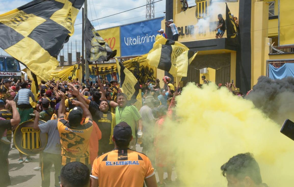 Un nutrido grupo de hinchas de Mitre se convocaron en la sede del club para realizar un banderazo en apoyo a su equipo, que el próximo domingo visitará a Estudiantes de Río Cuarto por el Reducido de la Primera Nacional.