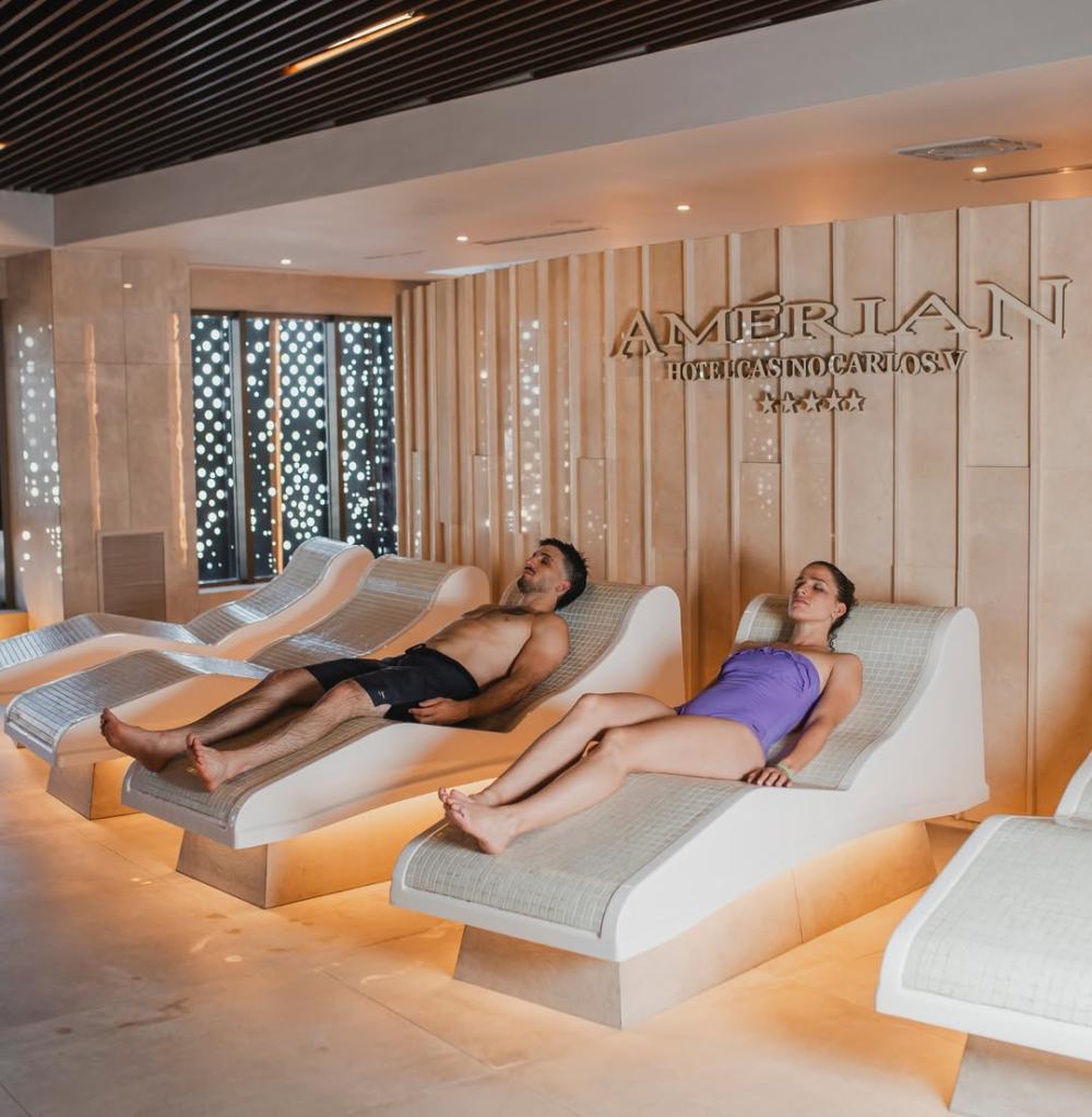 El verdadero escape se encuentra en el Spa Termal, el más grande de Latinoamérica, con más de $1.700\text{ m}^2$ dedicados exclusivamente al bienestar. El área ofrece un completo circuito hídrico, sauna seco y húmedo, y cinco gabinetes con una amplia carta de masajes y tratamientos.Con un servicio atento en cada detalle y régimen de pensión completa, el Gran Amerian Carlos V invita a regalarse el privilegio de vivir las Fiestas en familia sin estrés ni corridas, con la tranquilidad de que todo está resuelto.