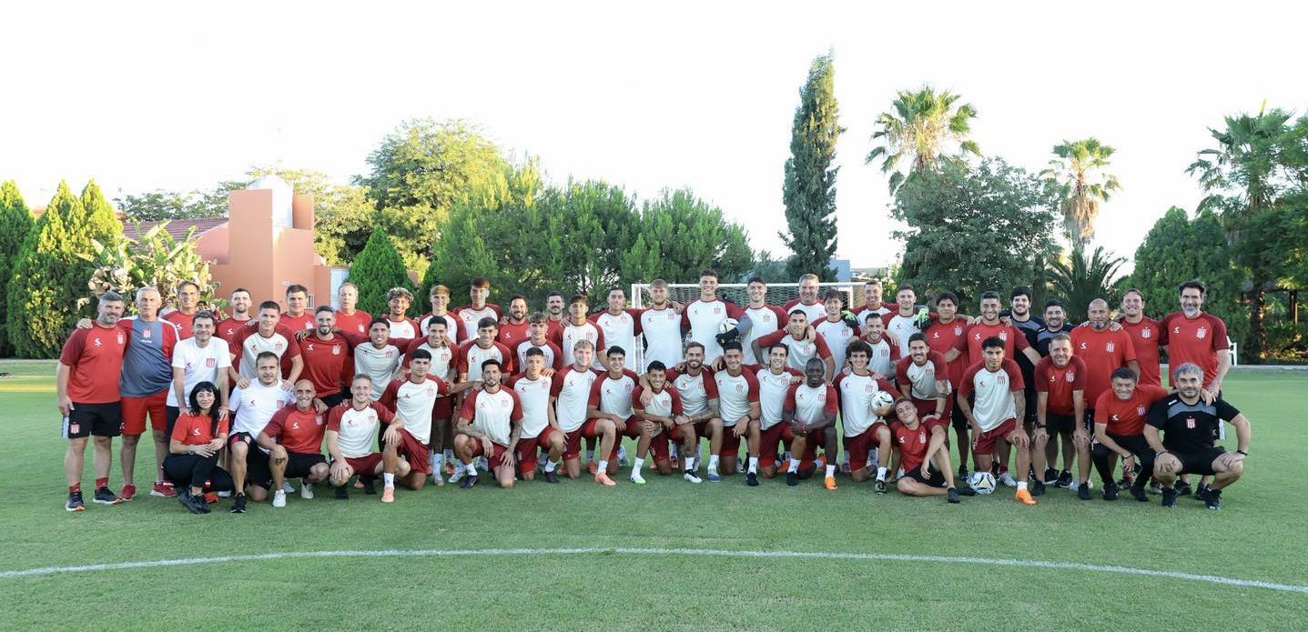 Para agradecer la espera y el recibimiento, los jugadores salieron del hotel un rato más tarde para ofrecerles a los hinchas un aplauso y luego posar ante el fotógrafo oficial del club en grupo.