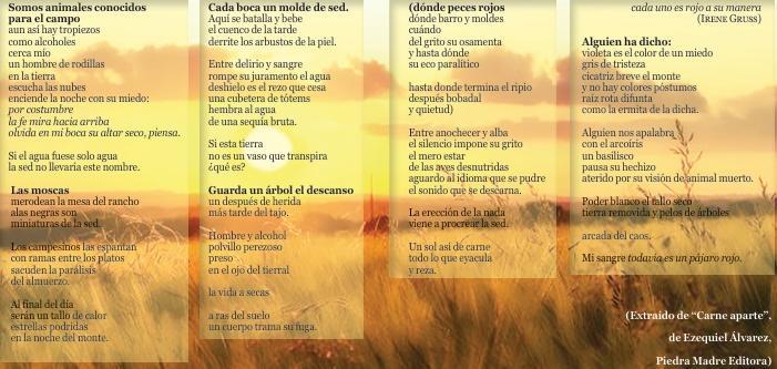 "En el centro de todo, está el poema", dice Blanca Varela. En el centro del monte santiagueño, está la poesía de Ezequiel Álvarez. En el pulmón mismo de su canto que espira un chamamé, en uno de los poemas más bellos del libro.