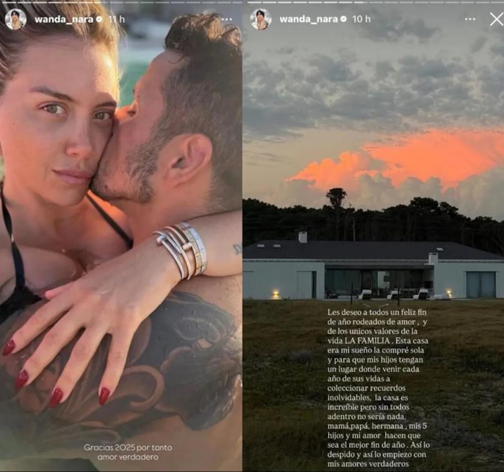 Luego, desde su casa en Uruguay, Wanda compartió un mensaje en el que celebró el fin de año junto a su familia y habló de "mis amores verdaderos", una frase que llamó la atención por el guiño implícito hacia Migueles.