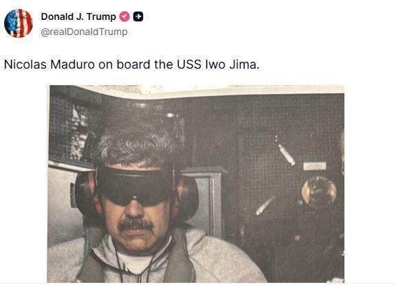 La imagen fue difundida a través de la red social Truth Social y muestra al mandatario venezolano a bordo del USS Iwo Jima, uno de los buques de la Armada estadounidense. La publicación estuvo acompañada únicamente por el mensaje: "Nicolás Maduro a bordo del USS Iwo Jima".