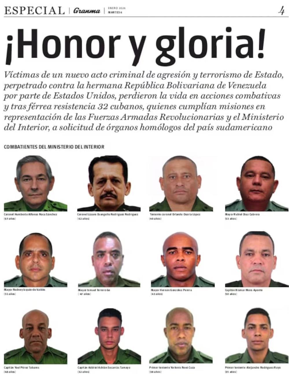 La información fue publicada por el diario oficial Granma bajo el título "¡Honor y gloria!", y replicada por el Ministerio del Interior cubano en sus redes sociales.