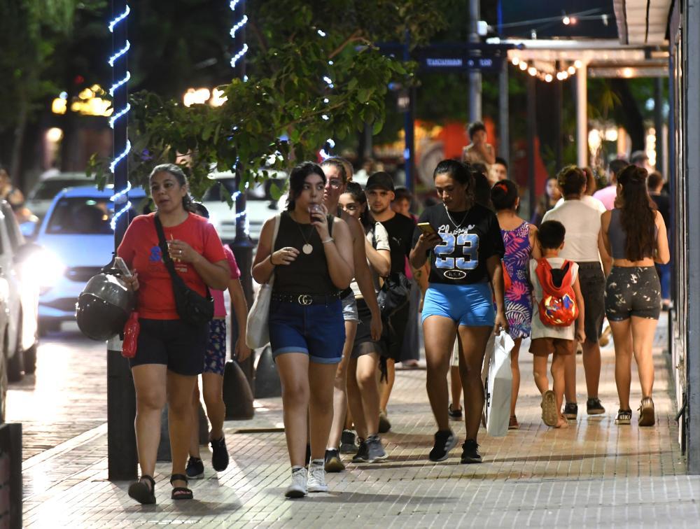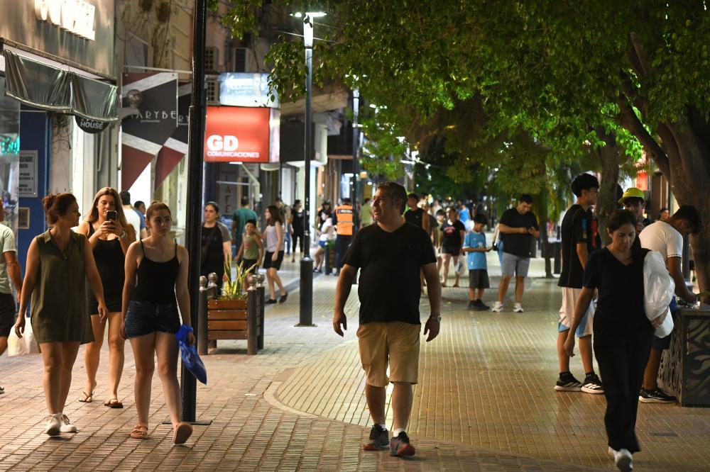 Familias, grupos de amigos y parejas aprovecharon la jornada para caminar, recorrer locales, comparar precios o simplemente sentarse en bares y cafés, aun cuando el termómetro superó los 30 grados durante gran parte del día.