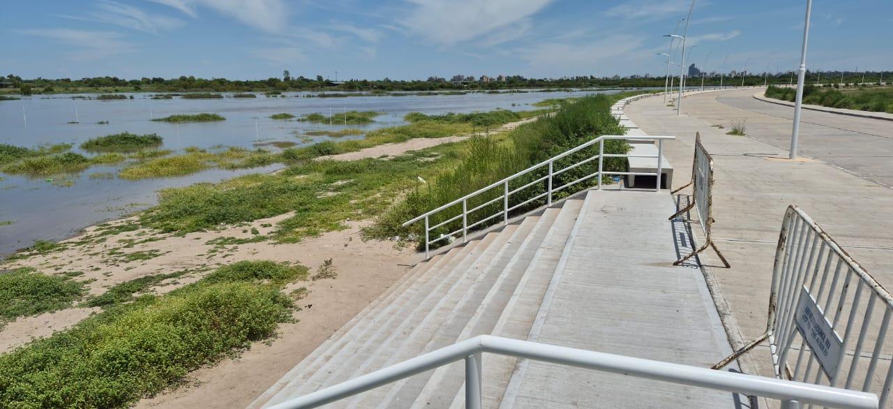 La costanera del puente Solís, un espacio elegido por cientos de santiagueños para disfrutar del calor durante este verano, amaneció este jueves con un nuevo paisaje: las sombrillas de paja desaparecieron por la crecida del Río Dulce.
