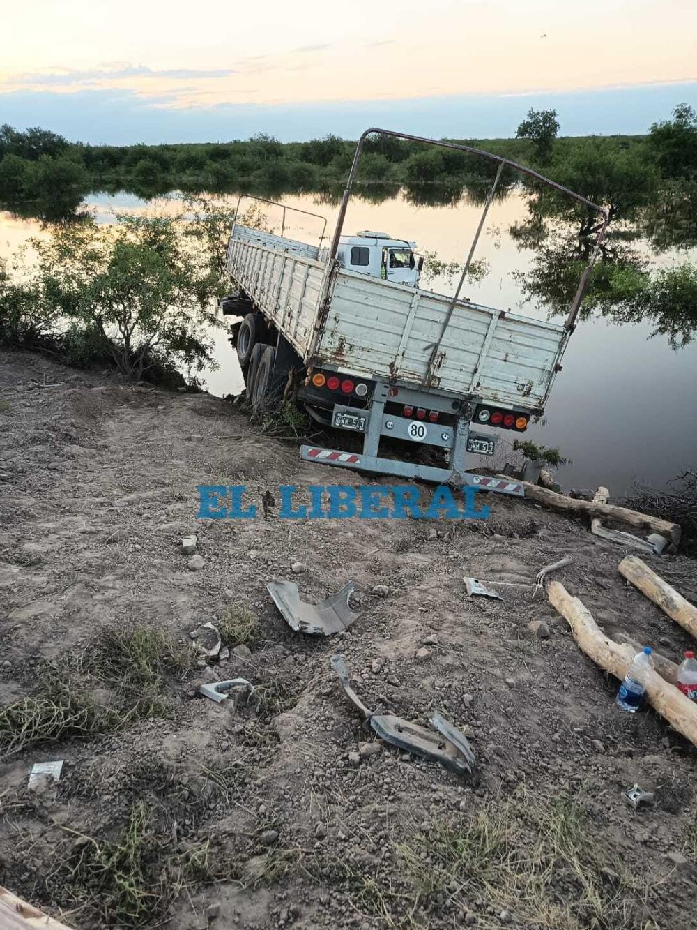 Por causas que se investigan, un camión impactó contra un tráiler que transportaba postes y, como consecuencia del choque, terminó cayendo al agua debido al desborde del río Saladillo. A pesar de la violencia del impacto y de las difíciles condiciones del lugar, el conductor del camión logró salir de la cabina por sus propios medios, evitando consecuencias mayores.